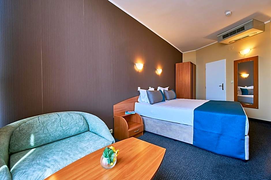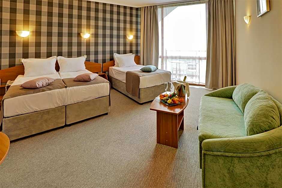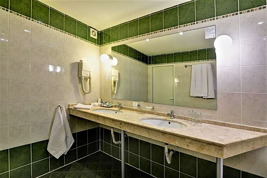 Double room 1 adult + 1 child is 258 square feet and includes 2 single beds 80-130 width plus balcony and hairdryer.